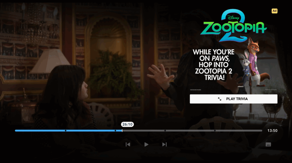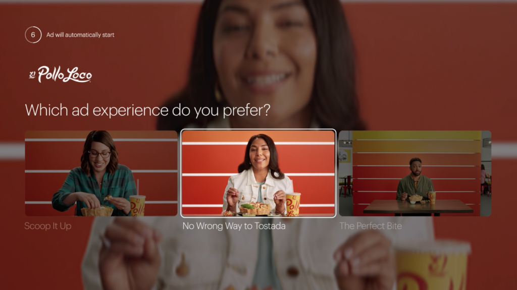 Disney’s Ad Selector allows the user to choose their ad experience by selecting the ad they want to view. The user will be presented with two or three video options. Once a selection is made, the user will be presented with the commercial of their choice. If no selection is made after :15, one video in the unit will be randomly selected to play.
